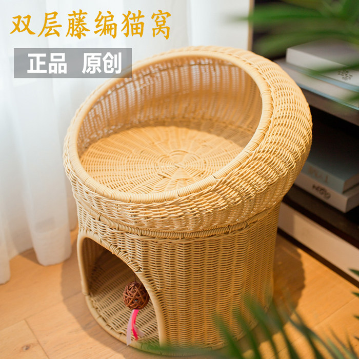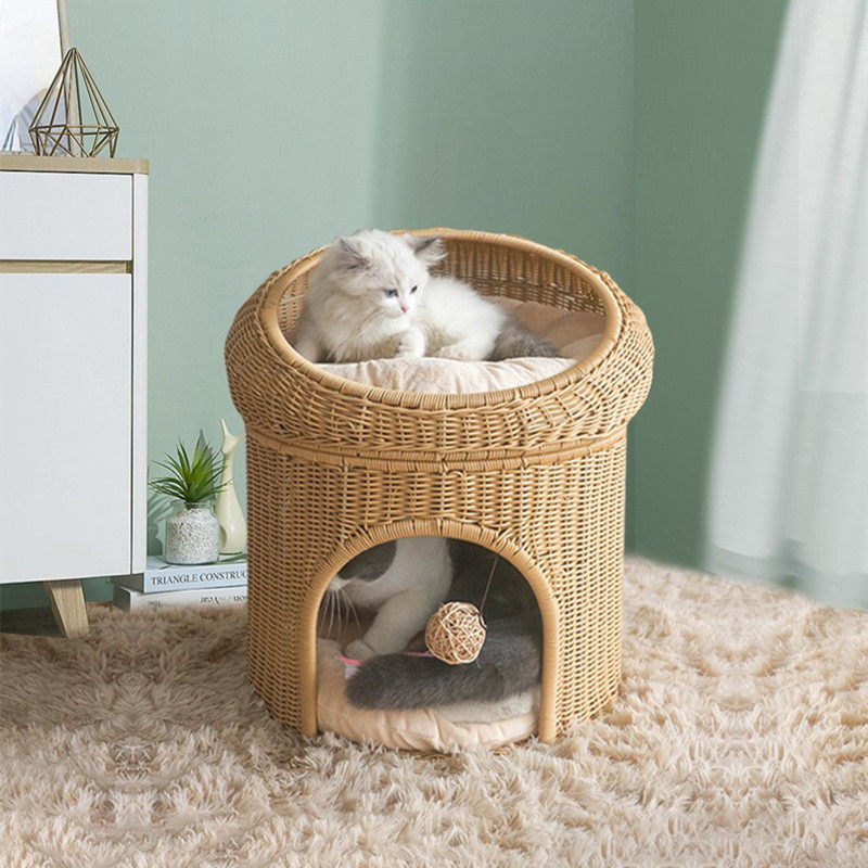 Imitation vine chicked double-decker cat house cat house cat cafe Supplies cat furniture Cat Tree Climbing Cat Feline Toy Resistant Cat Villa