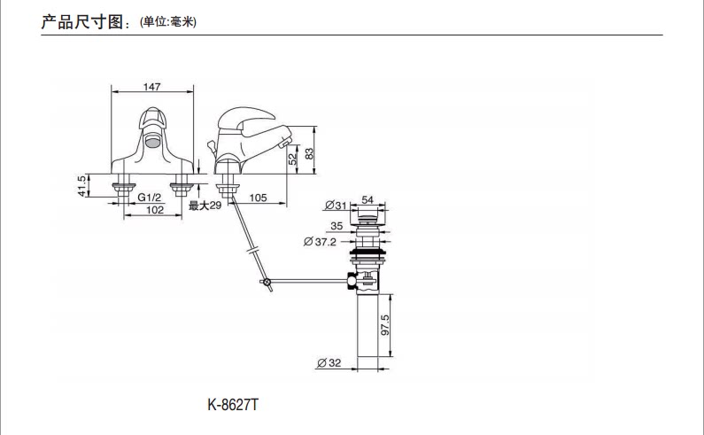 Kohler K-8627T-CP according to Eurasian 4 inch single washbasin faucet