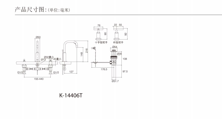 Kohler K-14406T-3 4-CP SN PGD BGD RGD RGD Floating Reshi 8 inch basin tap