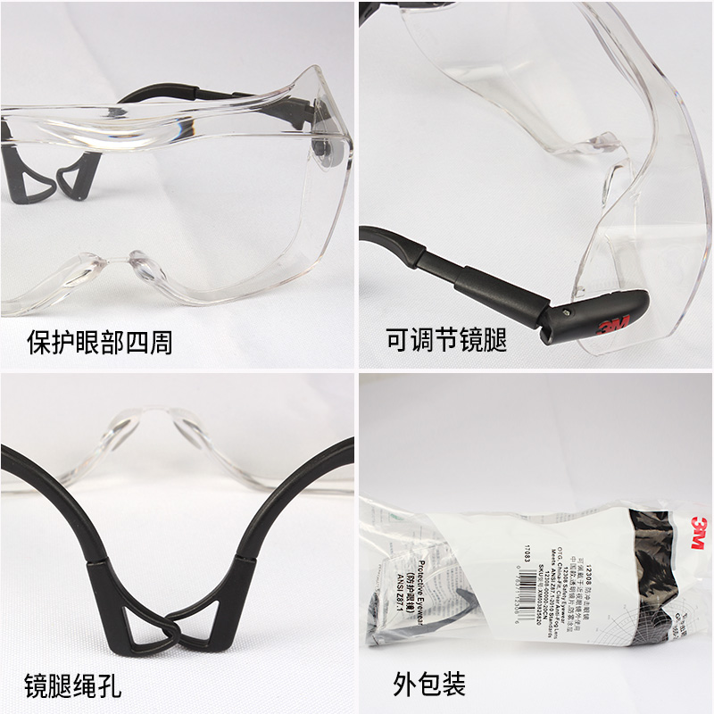 3M 12308 goggle niggles anti-shock lalabor transparent dust-proof windproof splash (anti-fog)