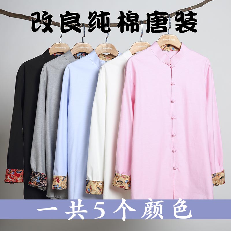 Improved Tang Clothing Men's Youth Spring And Autumn Season Long Sleeve Blouses Casual Hanfu Men's Retro China Wind Men's Clothes Gusty