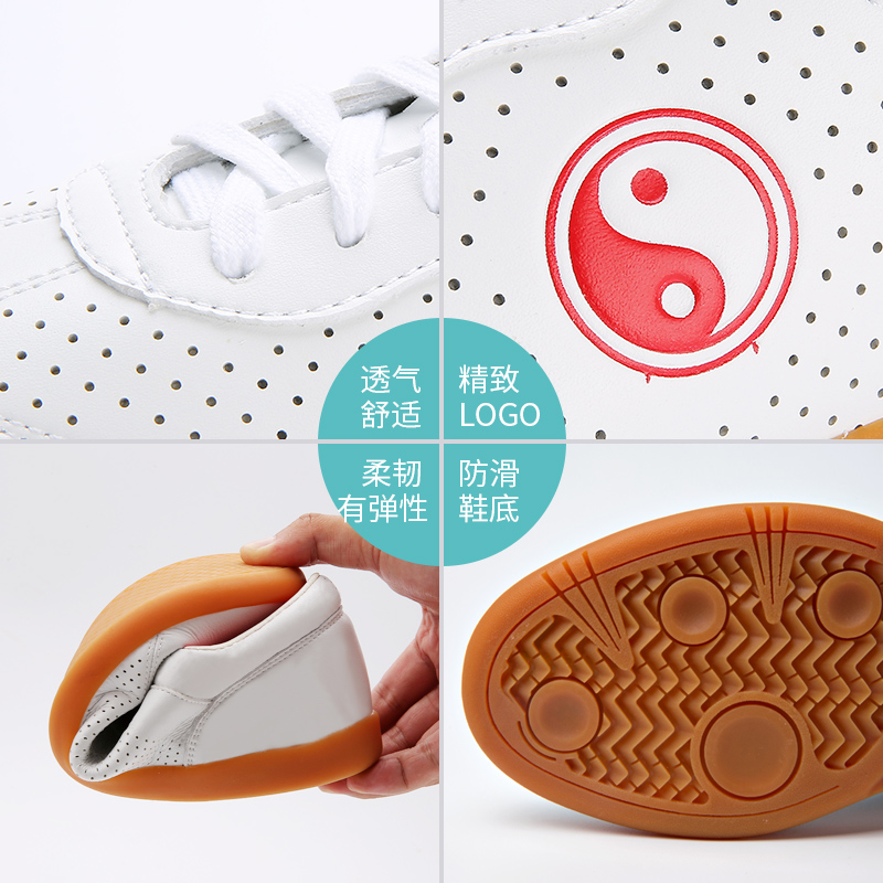 Samurong Tai Chi Shoes Men And Women White Breathable Martial Arts Shoes Bull Gluten Bottom Middle Aged Taijiquan Exercises Shoes Sneakers