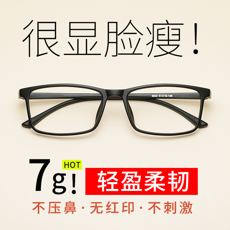 Myopia glasses male glasses frame female ultra-light TR90 glasses frame simple small frame glasses small face flat black frame glasses