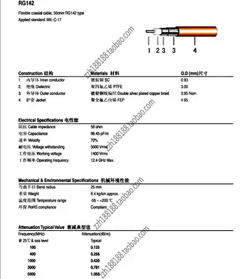 SFF50-3-2 dual screen cover RG142 Teflon coaxial cable 50-3 cable RF coaxial cable