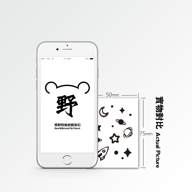 Bear Wild Tattoo Sticker Mini small universe and Beauty Mole Creativity Planet Spaceship Waterproof Star Tattoo