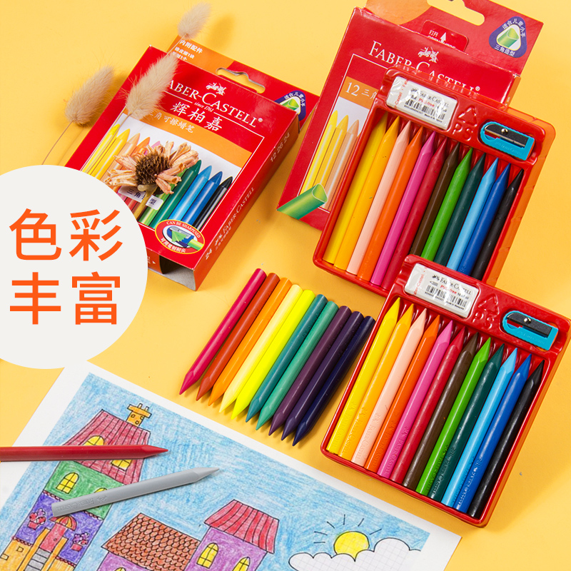 Huibaijia triangle erasable crayon 12-color 24-color children's color crayon set Oil stick colorful stick Primary school art painting Kindergarten oil stick painted stick free rubber pencil sharpener