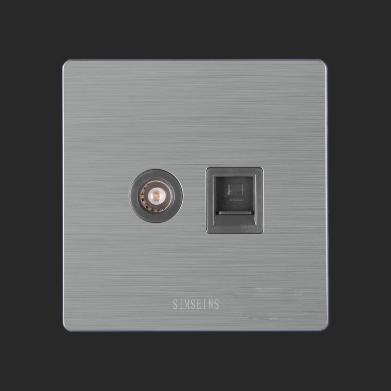 Q8 stainless steel ultra-thin 86 type TV computer wall switch network socket cable TV switch socket panel