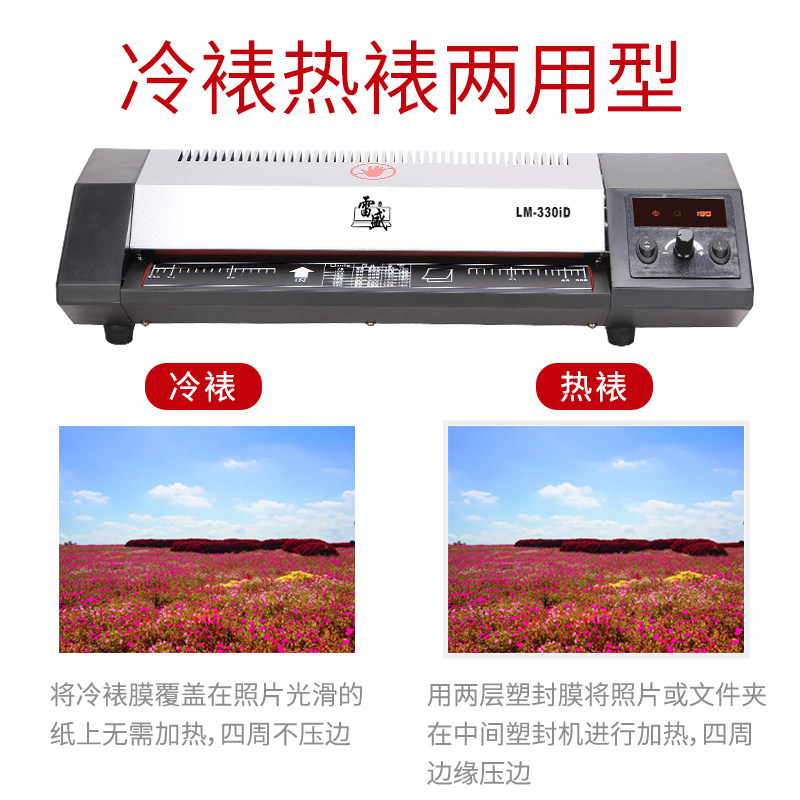 Scallop machine a4 a3 universal sealing machine Commercial high-speed frequency conversion scallop machine Household photo photo business card scallop machine Leisheng LM-330iD cold laminating hot laminating graphic commercial laminating machine