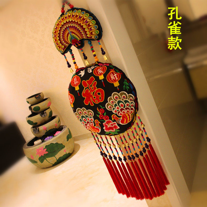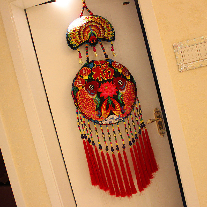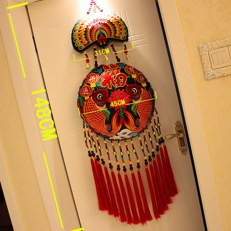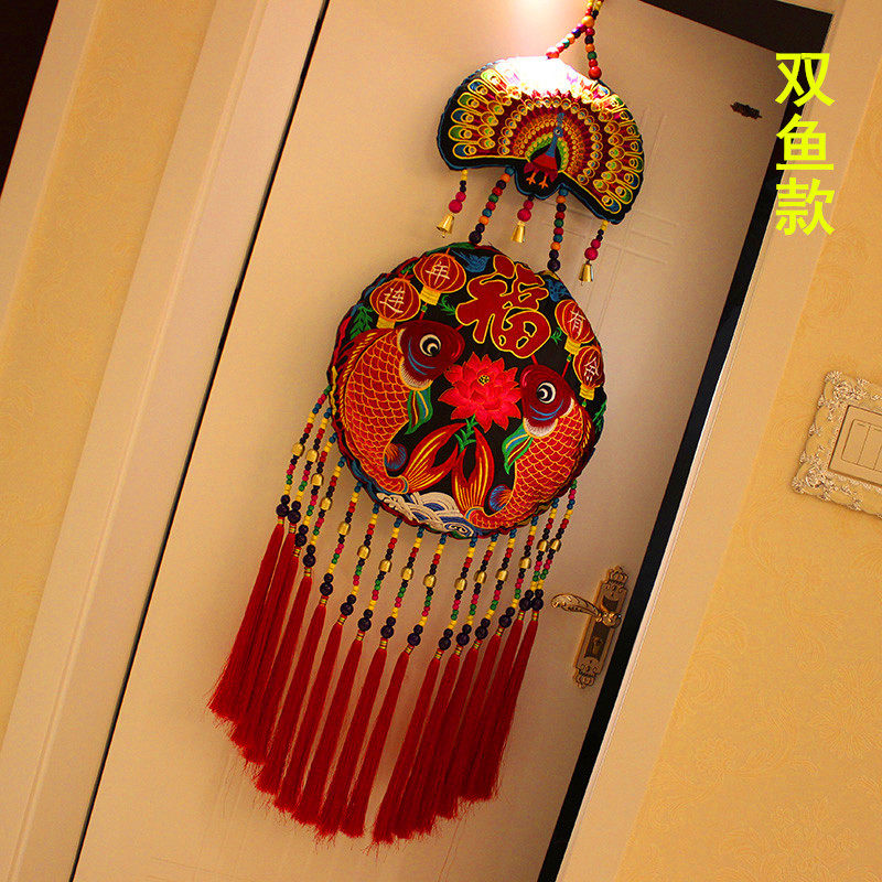 China Wind National Cloth Art Xuanguan wall-hanging Yunnan Twin Fish Big pocketbook Pendant Store Restaurant Adornment