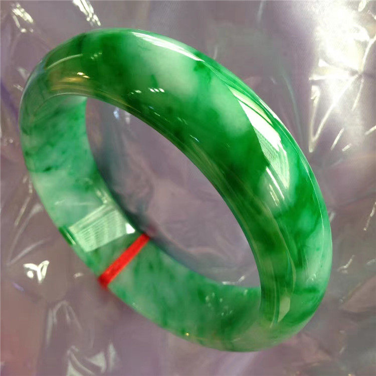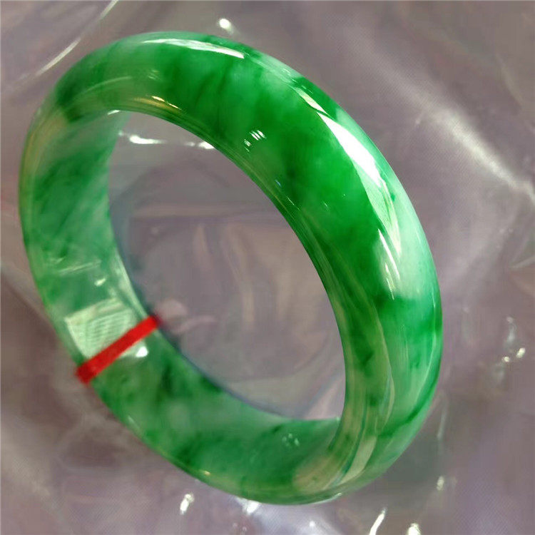 High-end ice moisturized green jade bracelet wide version old pit certificate natural Burma jade jade jade bracelet