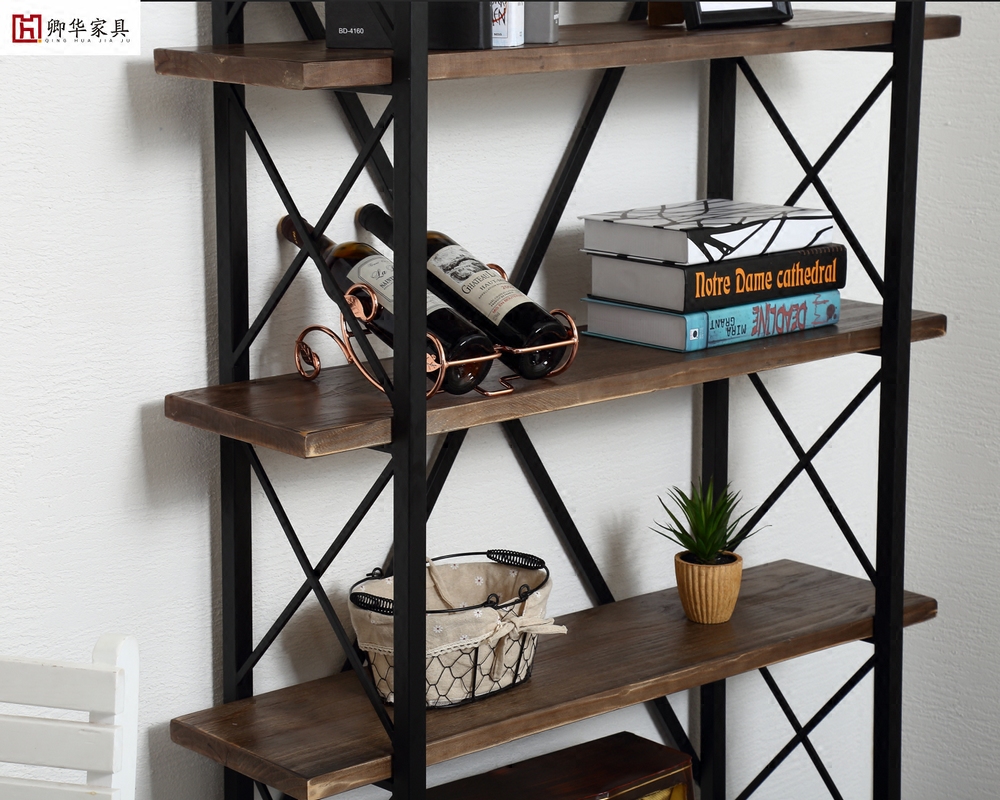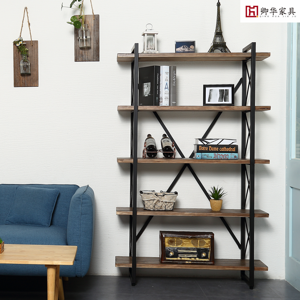 Vintage shelf Floor-to-ceiling solid wood partition book shelf Bedroom Nordic living room kitchen Wrought iron flower rack Storage display rack