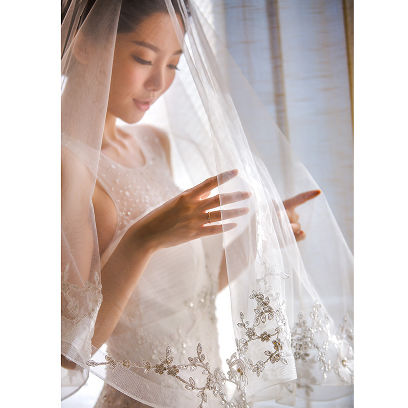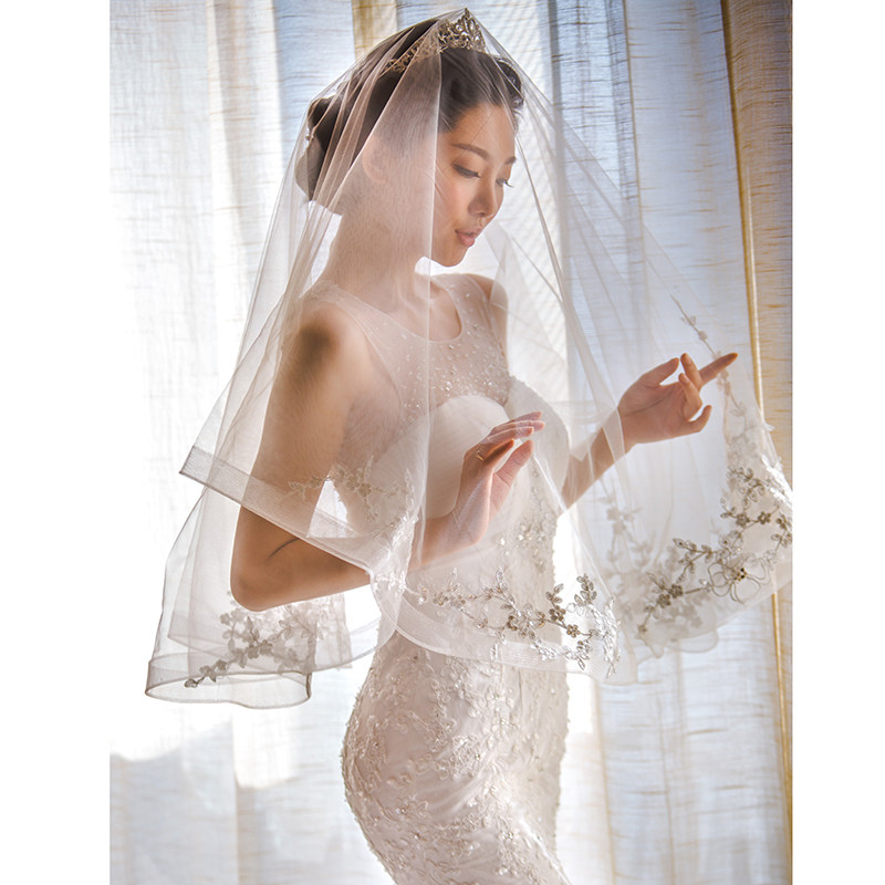 2020 new bridal veil Korean lace extra long 3 meters beaded soft yarn short wedding headdress