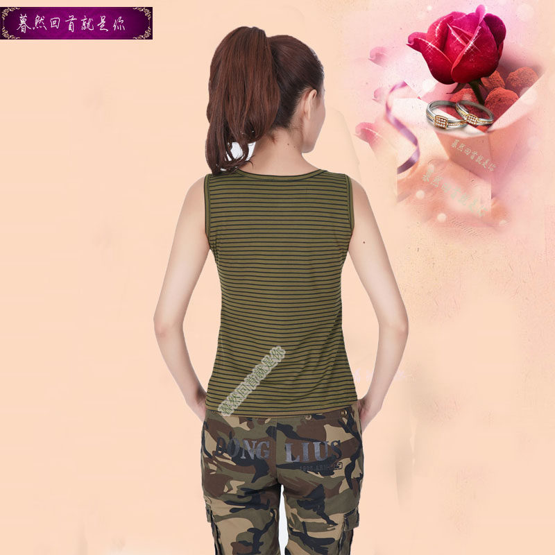 Casual vest military waistcoat sleeveless base shirt stripes Army Green women's top Stretch Slim cotton short summer