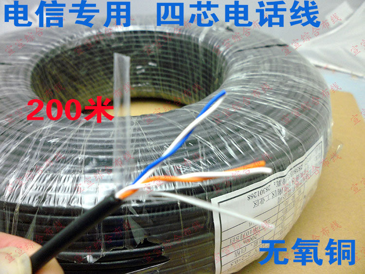 Foshan wide-meaning all-copper double-twisted telephone line four-core 0 5 core black 4 core double twisted telephone line 200 m