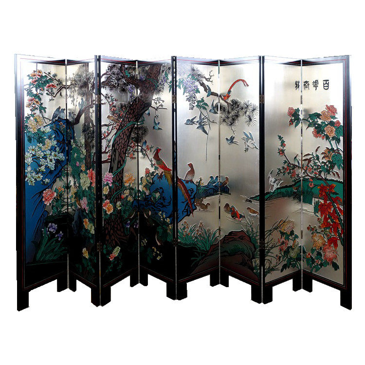 Yangzhou paint gold - piece silver - lacquer screen partition of the eight - fold mask screen - artwork neoclassical home decoration