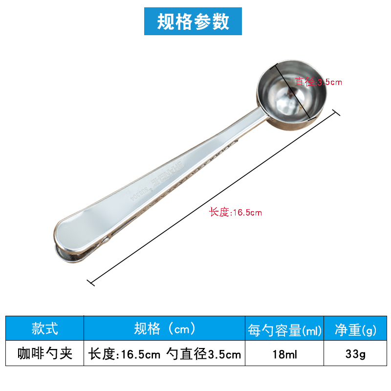 304 Stainless Steel Coffee Bean Calorie Spoon Metering Spoon Spoon Baked home Powdered Spoon Fruit Powder Spoon sugar spoon closure clip
