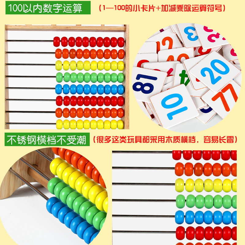 Montessori early education Primary school Counting stick counting children's abacus frame Children's wooden math teaching aids Abacus addition and subtraction toys