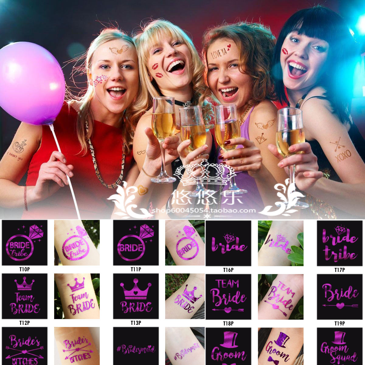 Purple bachelor party wedding party tattoo party tattoo stickers shooting props prop