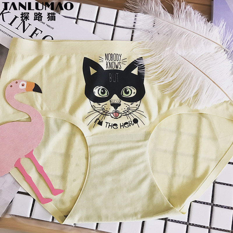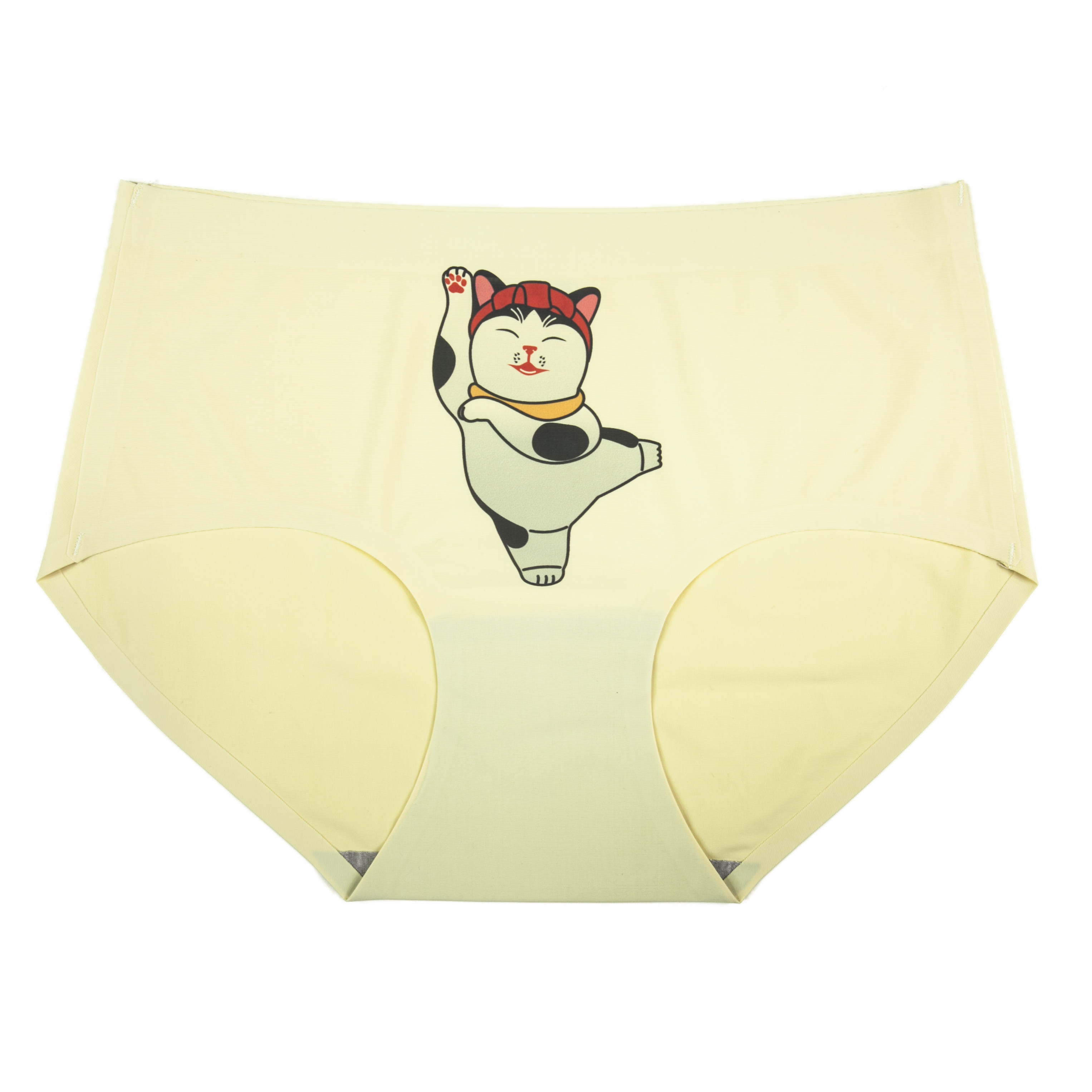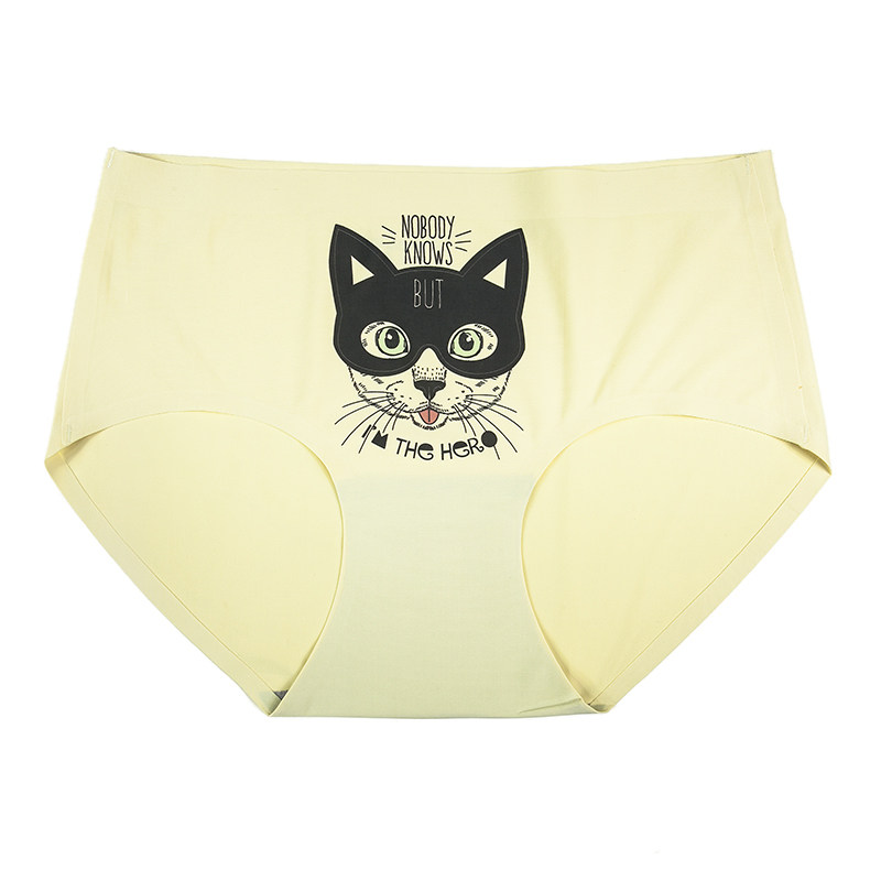 Summer fresh lemon yellow cute kitty inserts in teenage girl One-piece ice-silk unscratched mid-waist triangular underpants lady