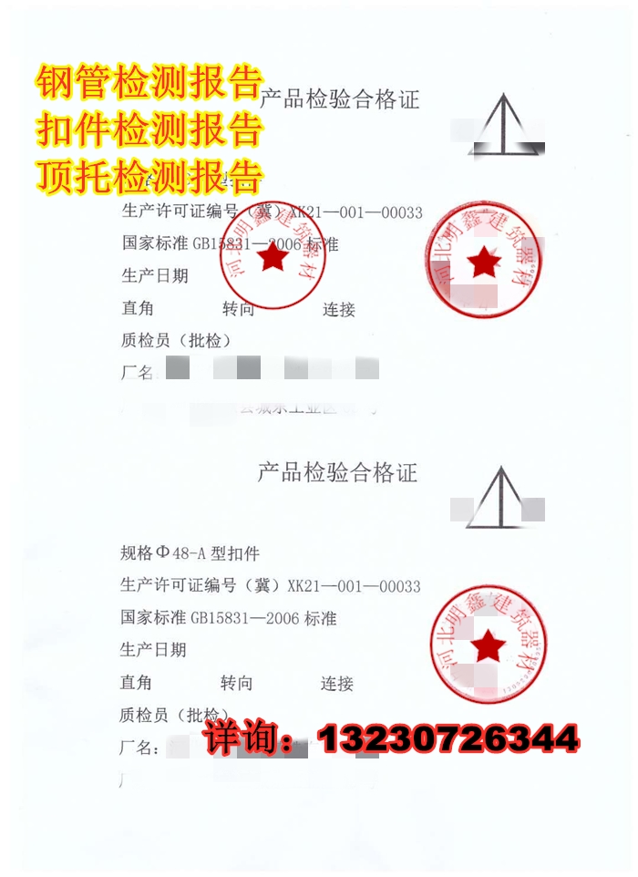 Cross fastener steering fastener connecting fastener set of 32 fastener inspection report Conformity Certificate set of construction Top-up detection report (electronic version) Fastener Detection Report (electronic version) Steel pipe detection report (