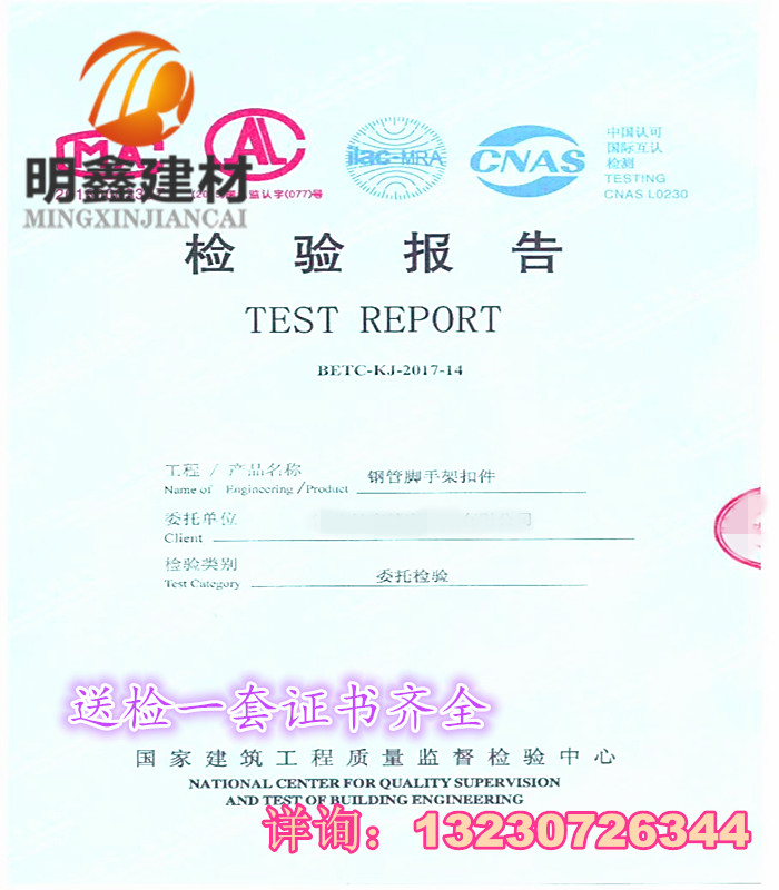 Construction detection fastener steel pipe connection fastener eagle rack fastener national standard detection fastener incidental detection report