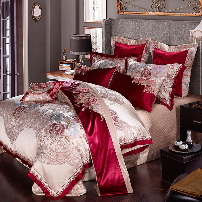 European-style wedding bed with supplies four sets of high precision gona satin villas high-end luxury six-eight-married dozen sets