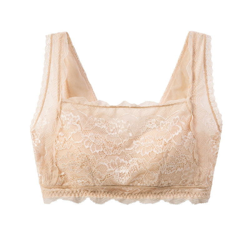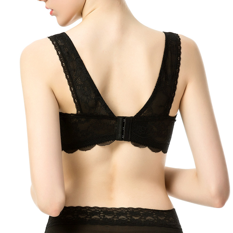 Breasted bra without steel ring lace wide shoulder strap female large chest display small summer ultra-thin style wrapping chest anti-walking light underwear