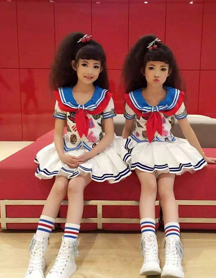 61 children's costumes children's red scarf chorus costume cheerleading primary and secondary school students tutu skirt female small navy suit