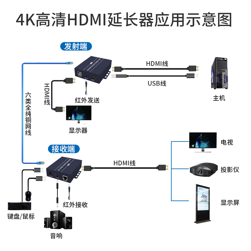 4K HDMI network transmission 120m pair 4K HDMI network transmission with keyboard and mouse 120m pair HDMI pair with keyboard and mouse pair 200m HDMI pair 2