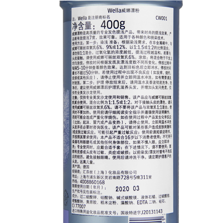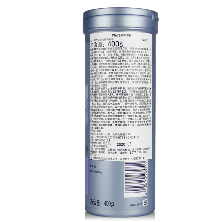 Imported WELLA Weina Drift 400g Various of rafting and dyeing techniques fading Tie 7-degree dust-free Dried powder