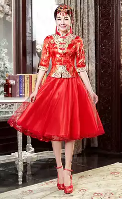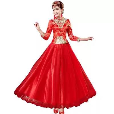 Bride toast 2020 Spring and Autumn new wedding dress Dragon Phoenix hanging red cheongsam Chinese wedding dress retro wedding wedding dress