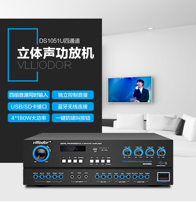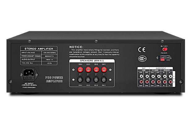Card packed speaker karaoke Wei 4*180w multiple audio source custom resistance amplifier with USB Bluetooth 1051U