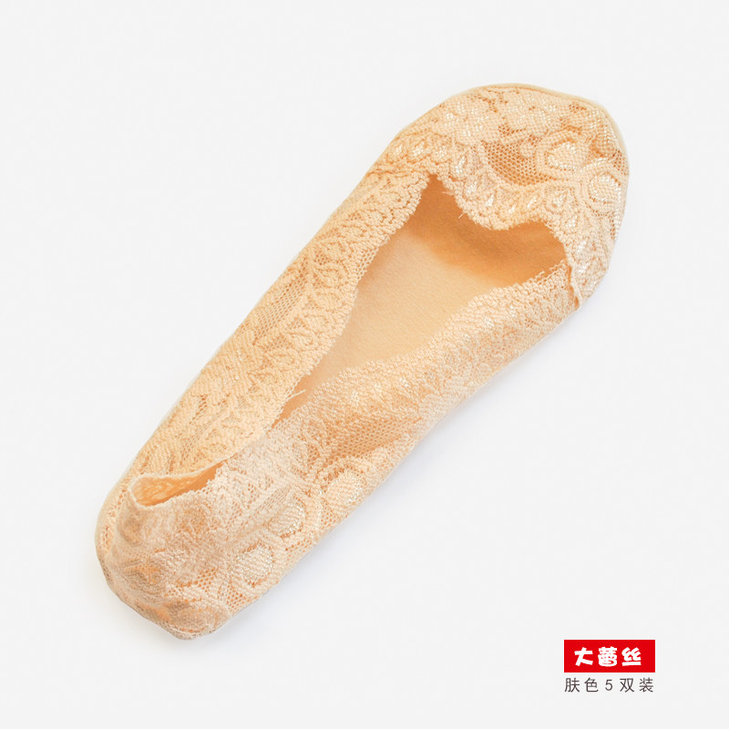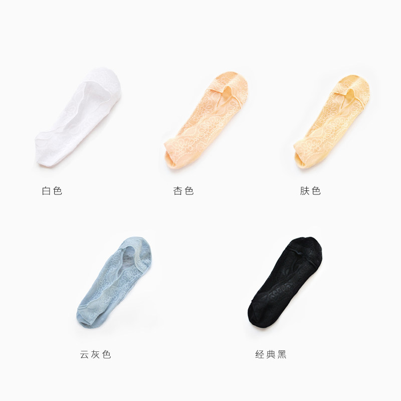 Thin lace boat socks women's silicone non-slip ice silk shallow mouth socks anti-fall with invisible socks summer 5 pairs