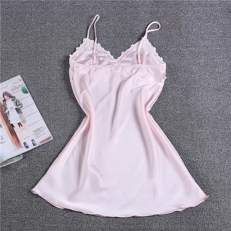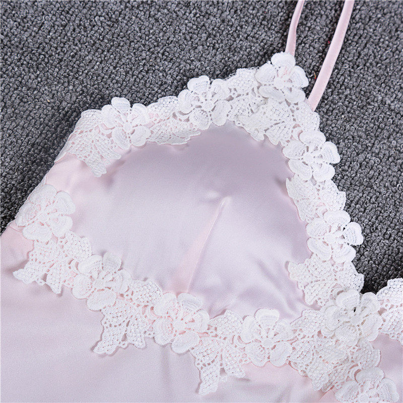 White Embroidered Lace Lady Summer New Emulation Silk Ice Silk Sleeping Dress With Chest Cushion Pyjamas Woman Summer Sexy