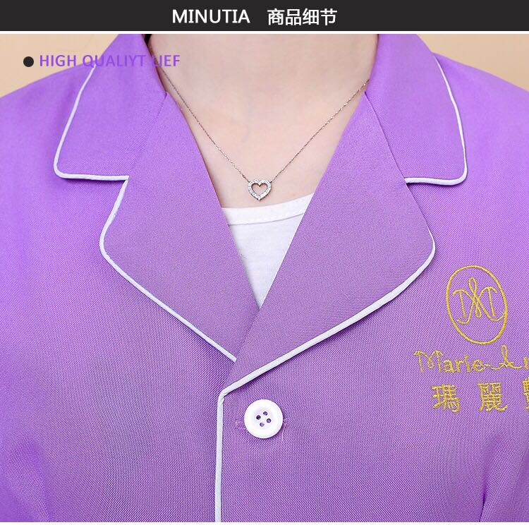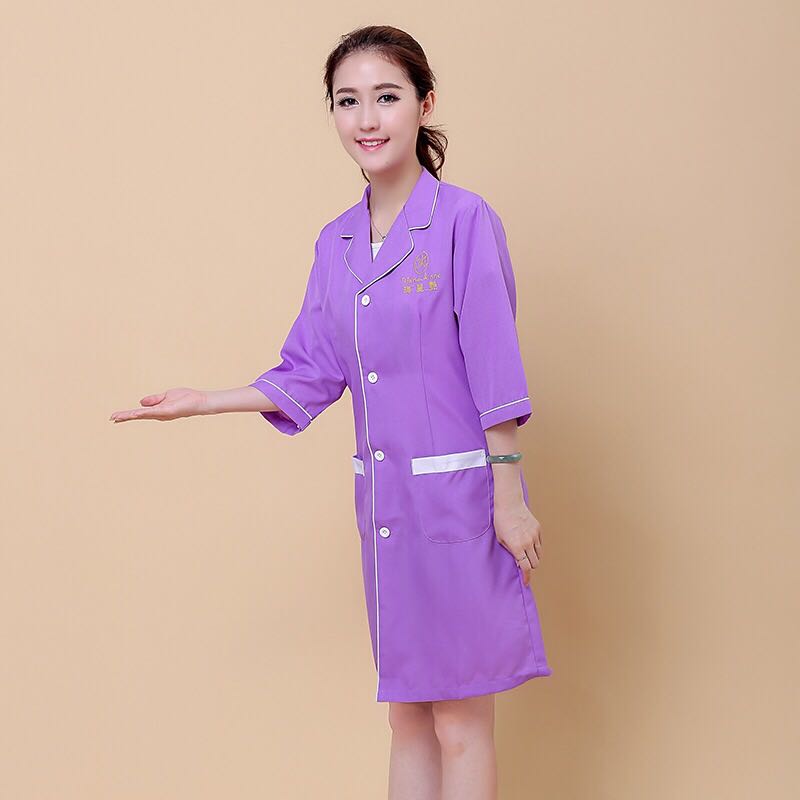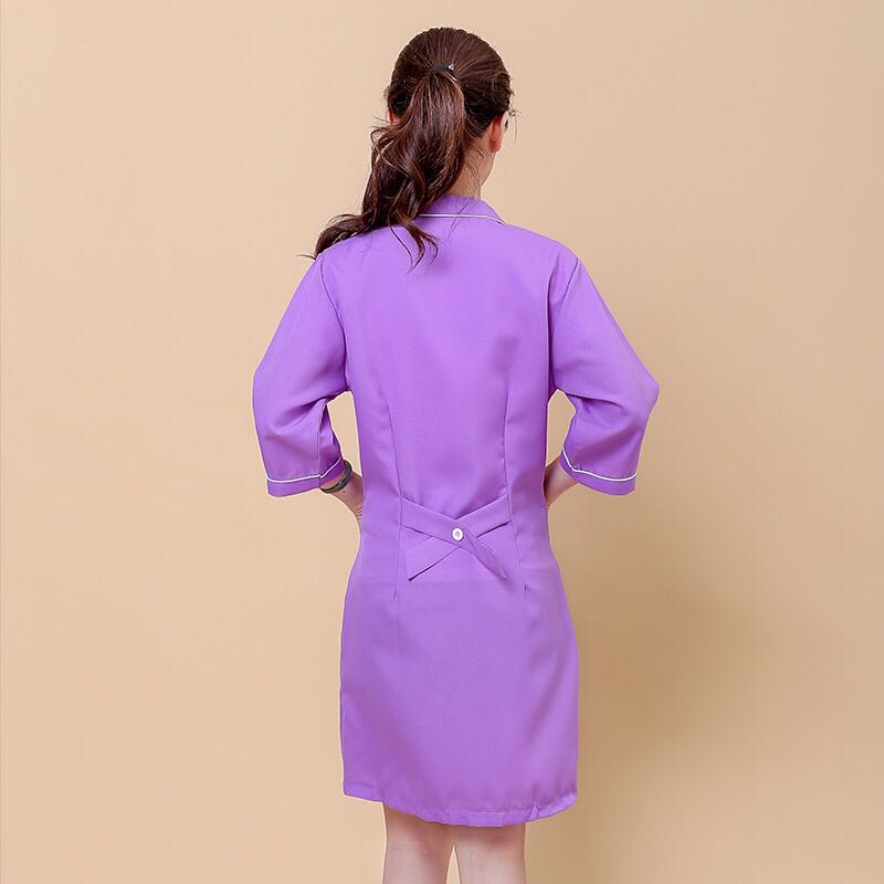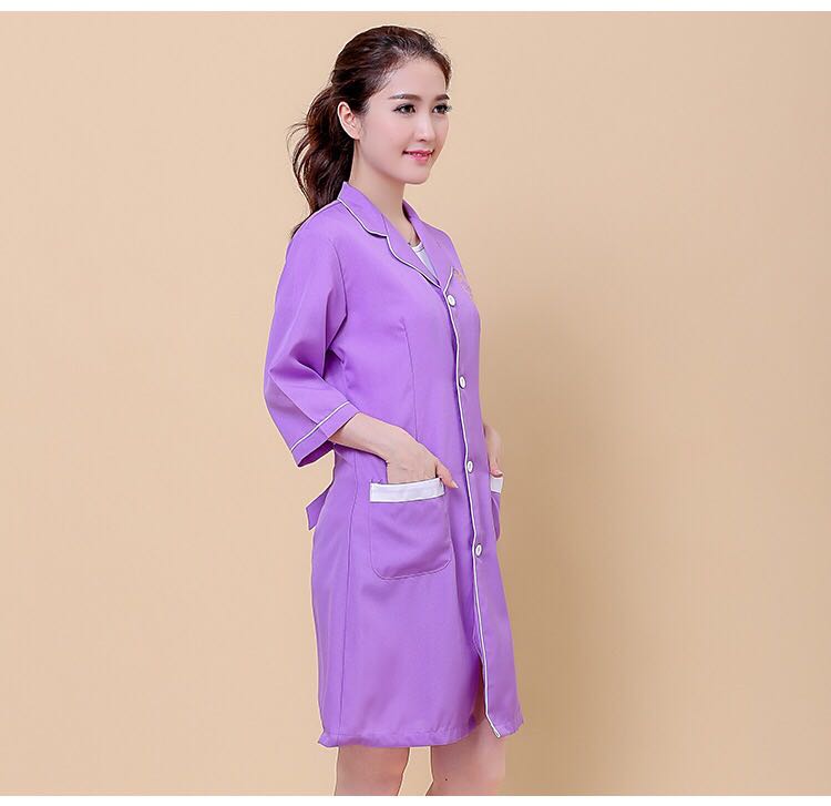 Beauty Workwear Mary Bright Purple New Middle Sleeve Beautician Trappings Long style beauty salon overalls-Taobao
