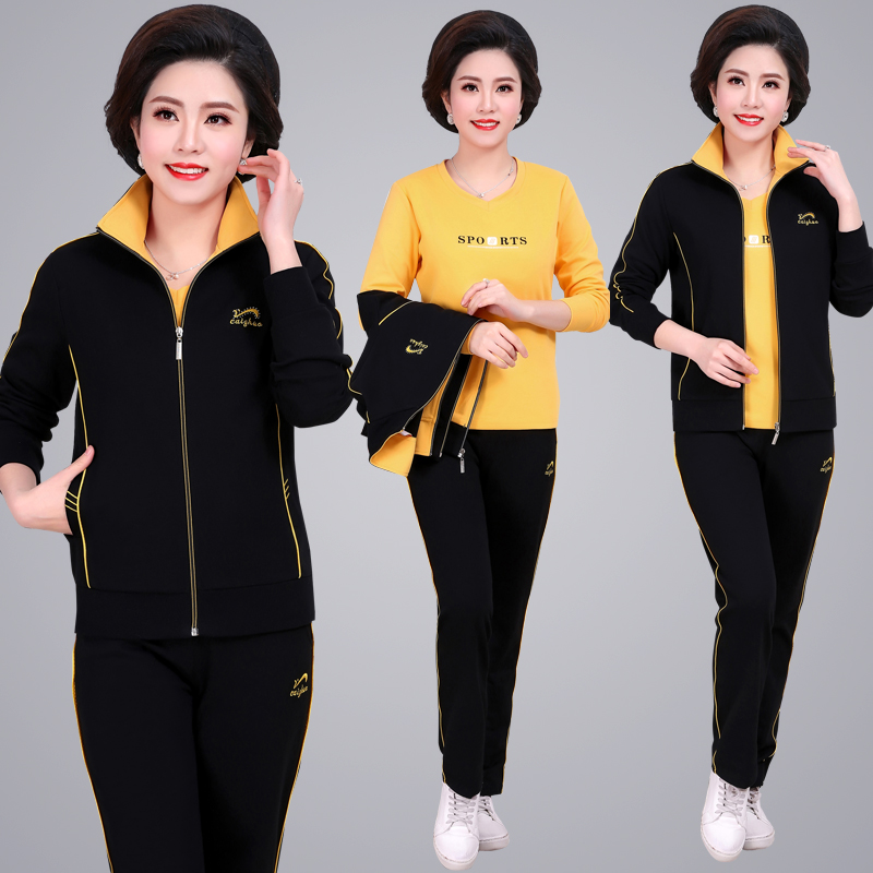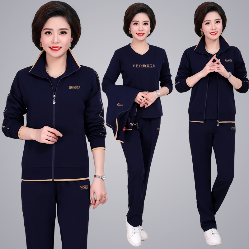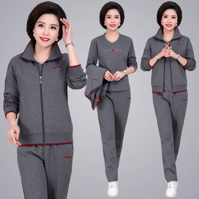 Middle-aged and elderly sportswear suit women's spring and autumn and summer large size middle-aged casual sweater three-piece long-sleeved loose mother outfit
