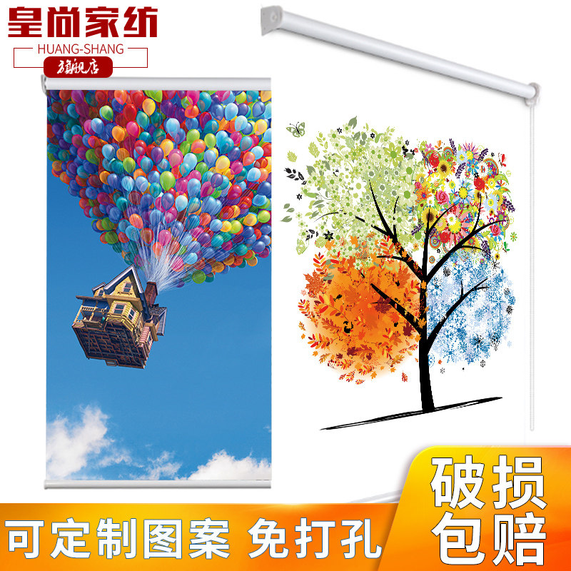 Huangshang free perforated roller blinds shading bathroom powder room kitchen sunshade waterproof living room lift roller blinds
