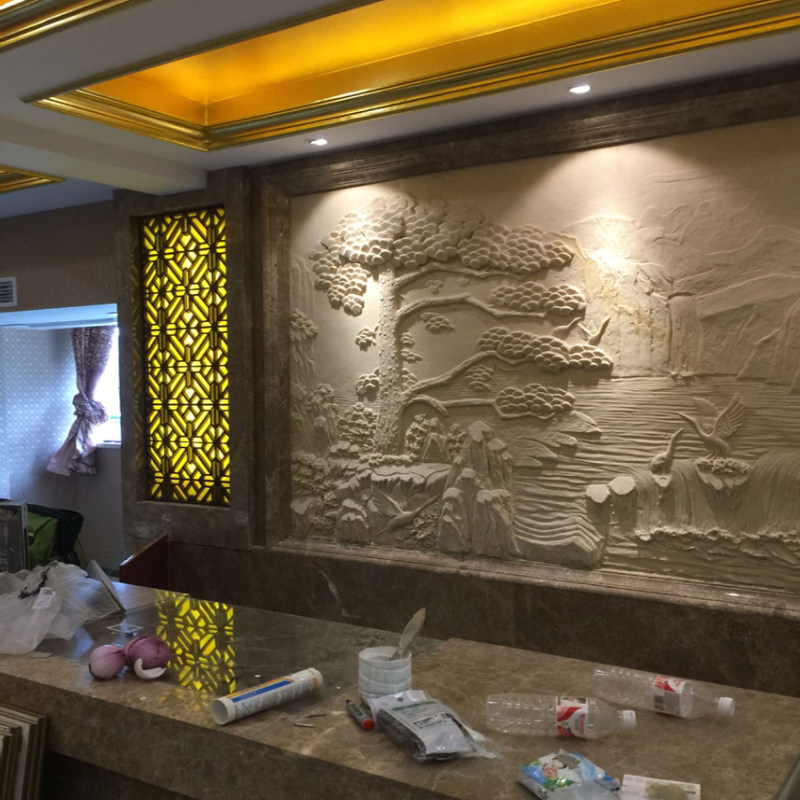 Artificial sand rock relief sand rock background wall Stone sculpture mural landscape custom glass fiber sand sculpture sculpture Songhe figure