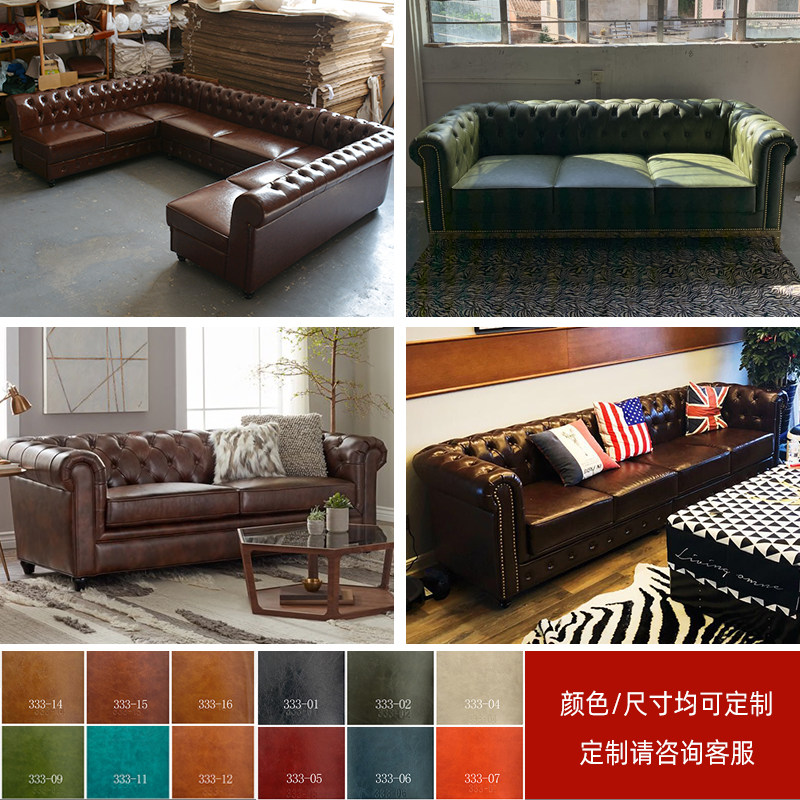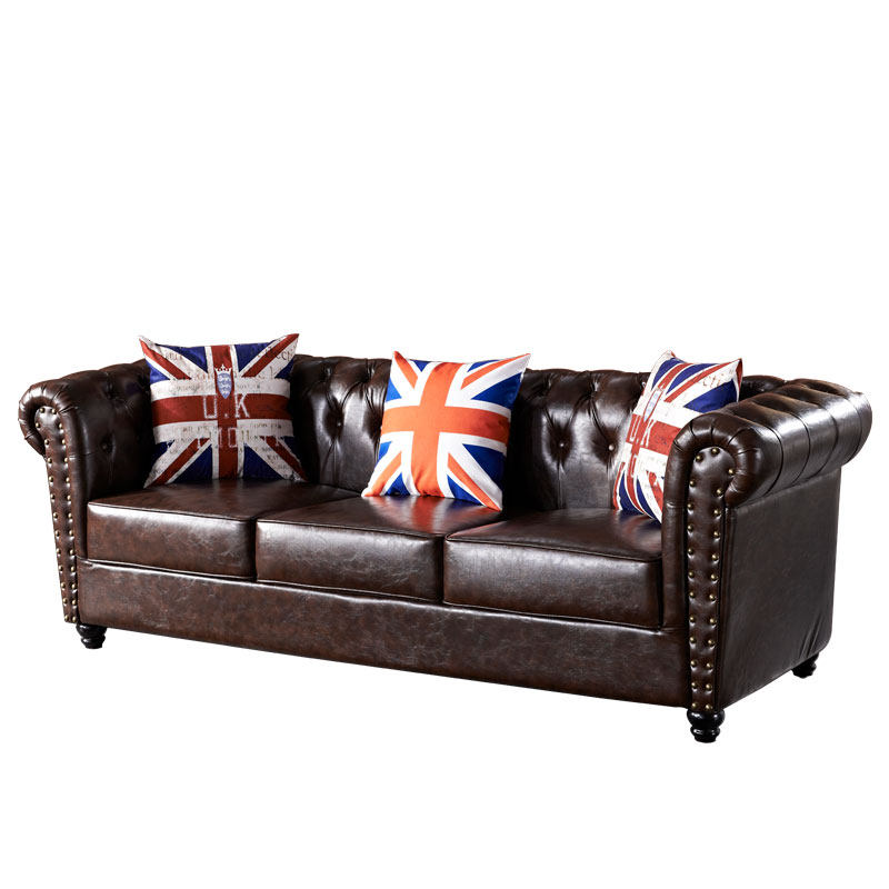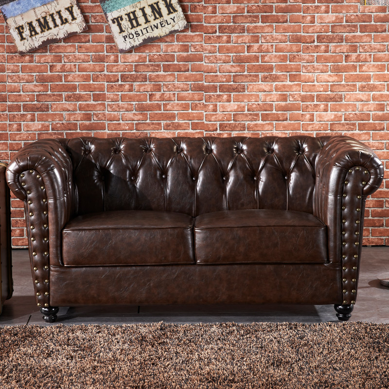 British style office pull button sofa American retro reception commercial cafe straight row living room leather sofa