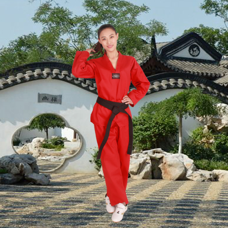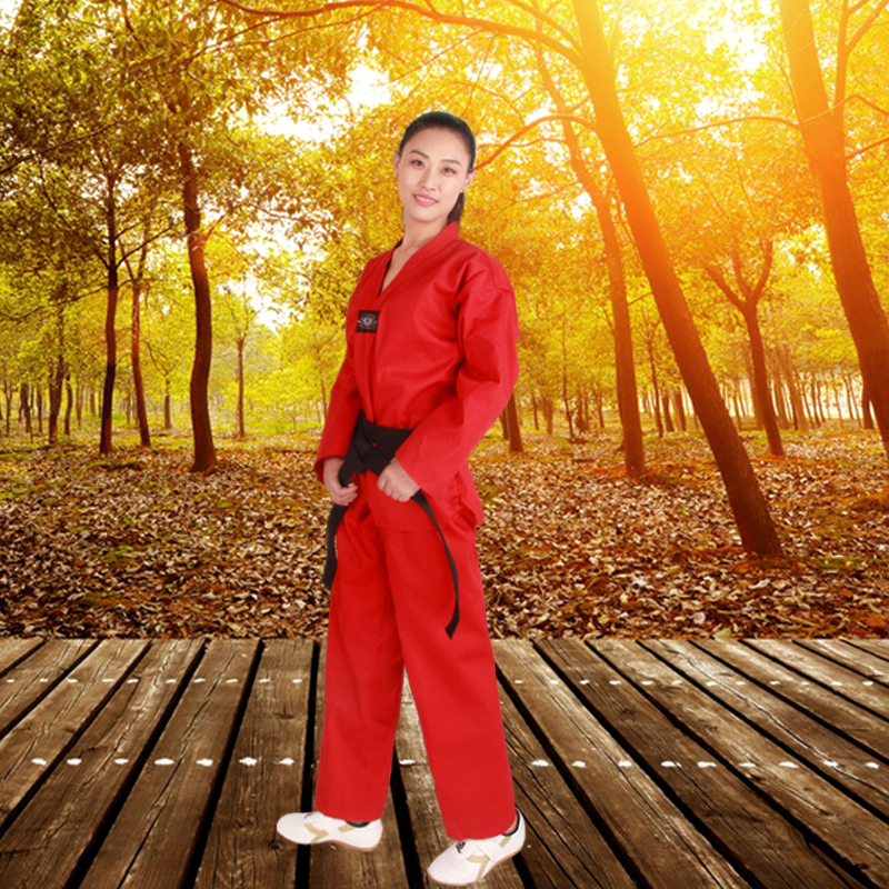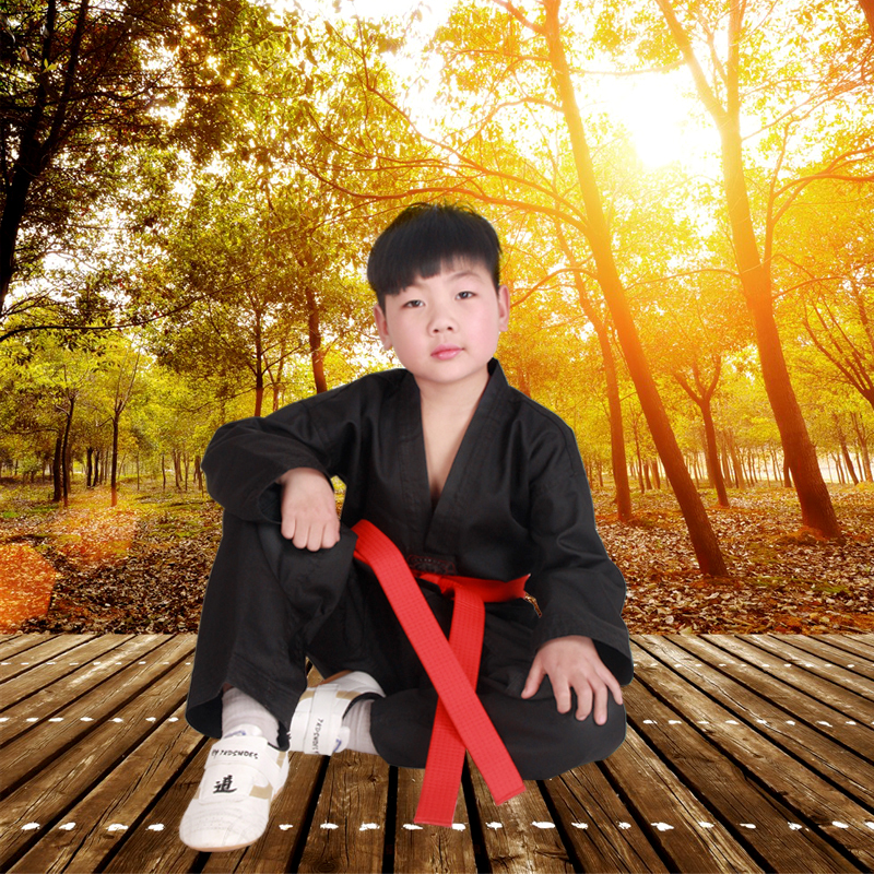 Taekwondo uniforms for all children Black red training clothing The length of the costumes The performance clothes can be printed and embroidered