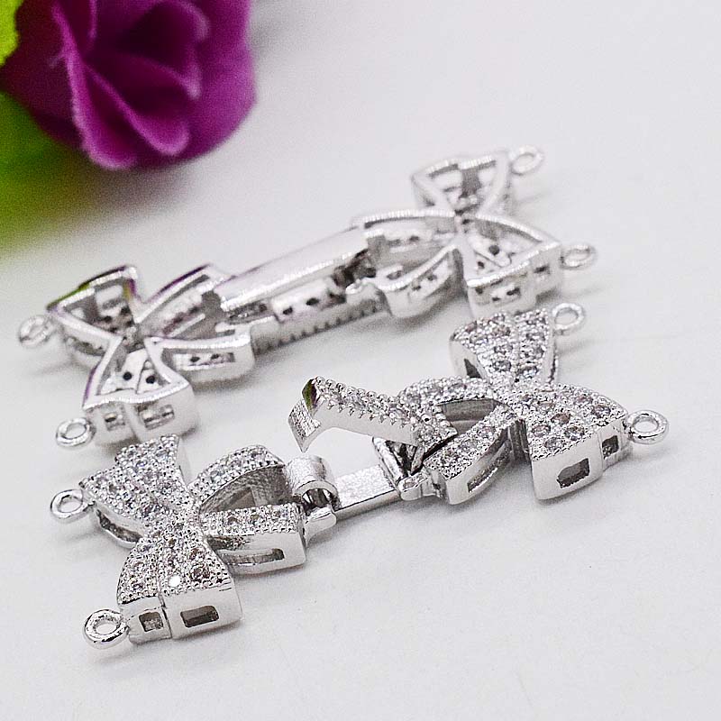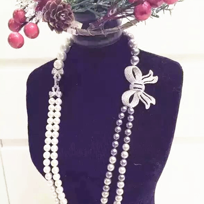925 silver button accessories diy bow double row fancy buckle two layers of pearl hand necklace button