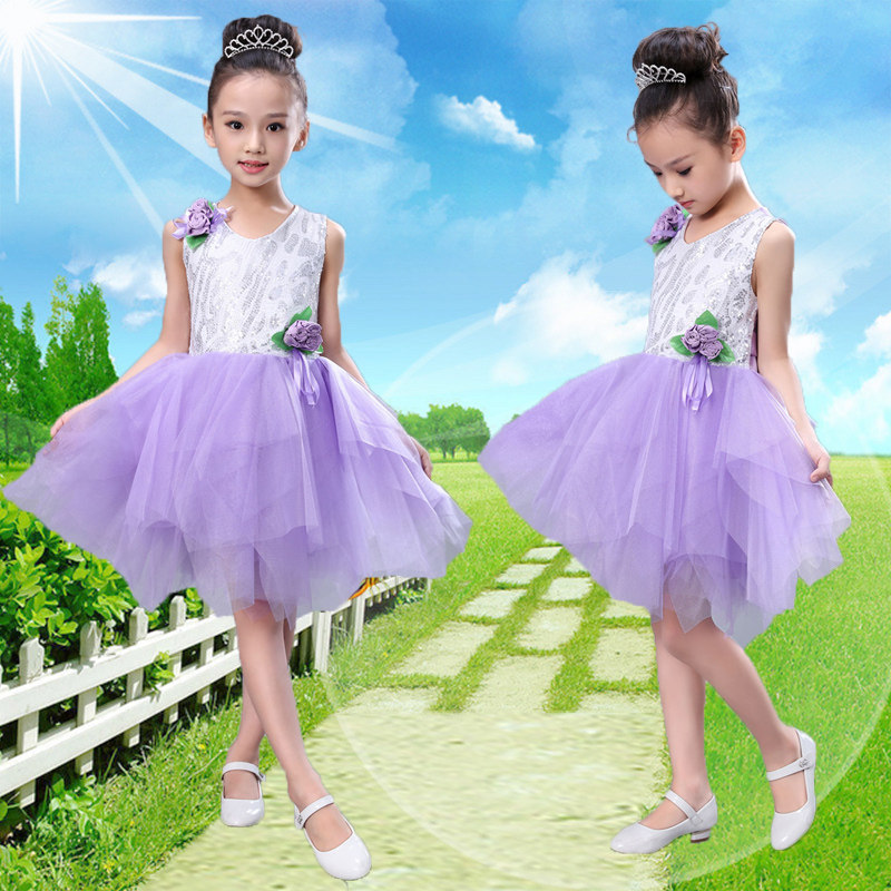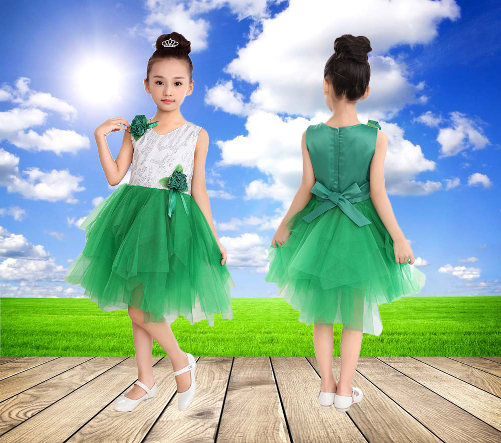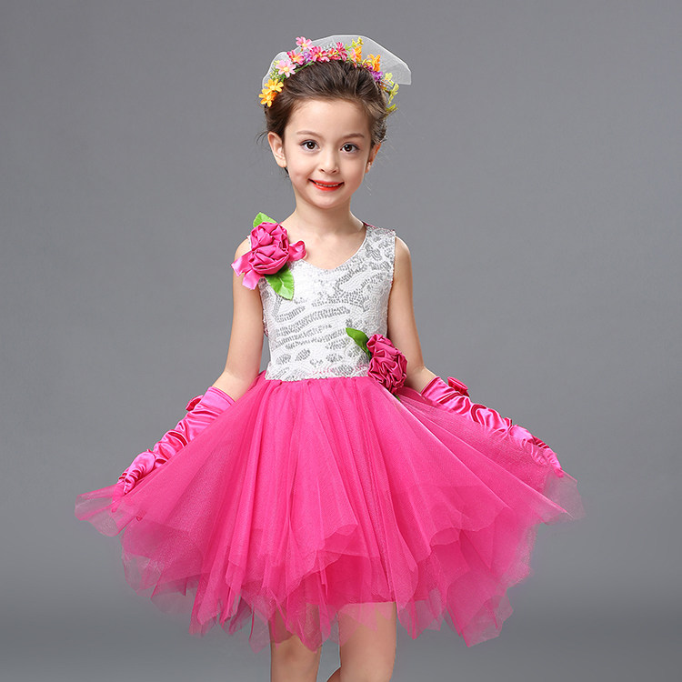 Student girls Princess bright dress dress and gauze leaf skirt child hosts performances dance dress red green
