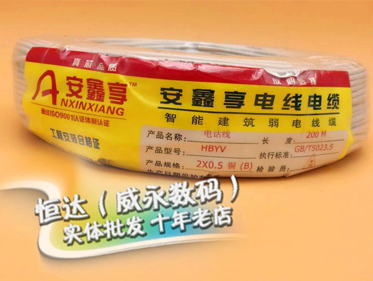 Anxin shared core single stock soft phone cable 2 * 0 5 full copper 2 core telephone line pure copper 200 m vol.