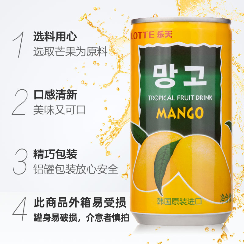 Korea imported fruit juice beverage Lotte Lotte mango juice 180ml*15 cans whole box wholesale beverage beverage