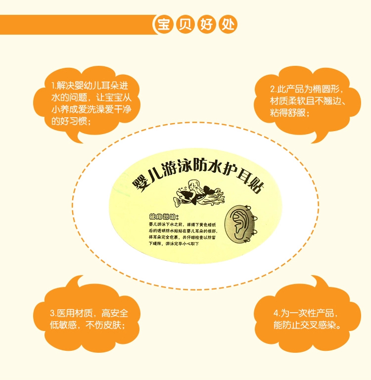 Huansheng Baby Swimming Ear Protector Waterproof Newborn Baby Baby Ear Patch Home Swimming Pool 100 pieces