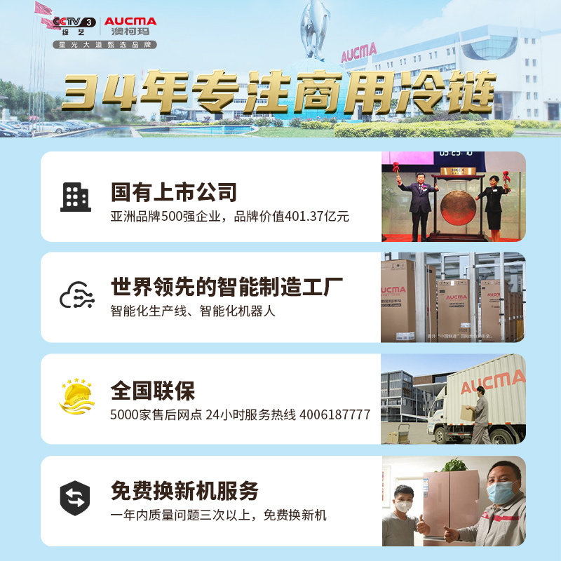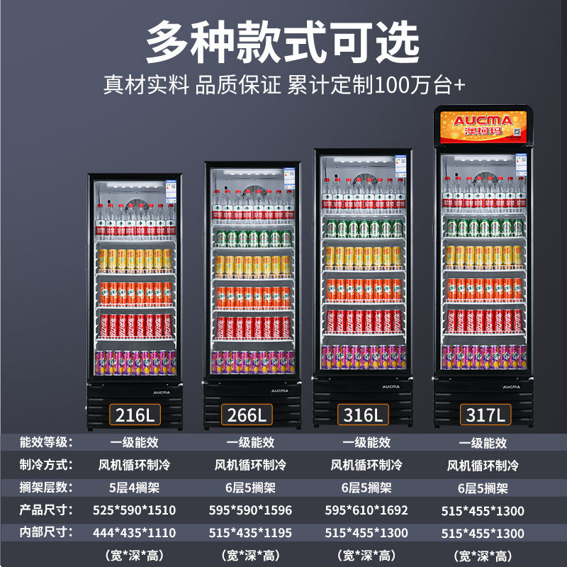 AUCMA Refrigerated Display Cabinet Commercial Refrigerator Single Door Vertical Freezer Supermarket Displays Beverage Cold Drinking Water Fruit Preservation