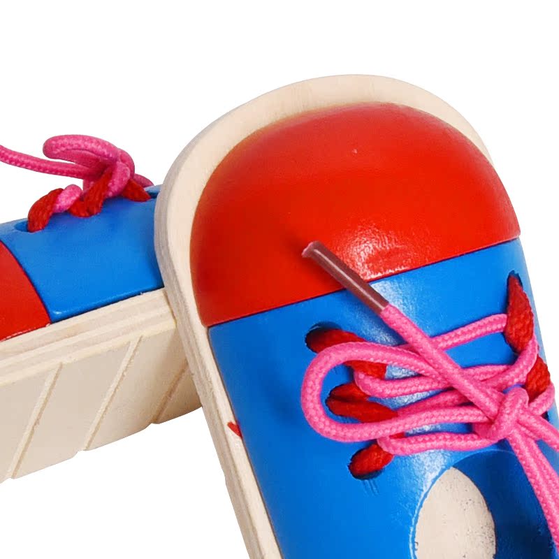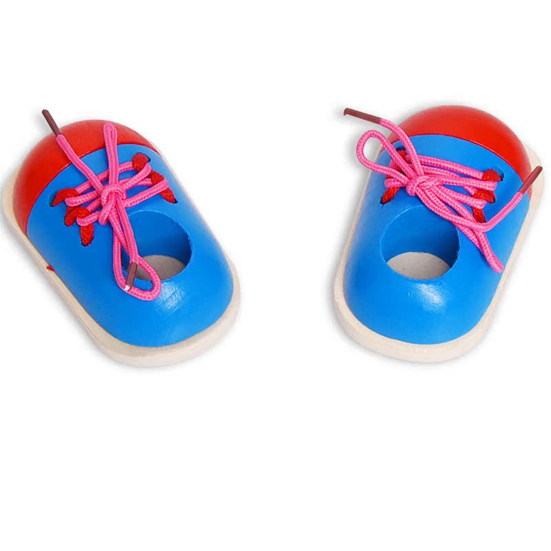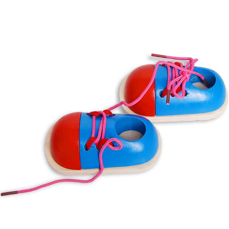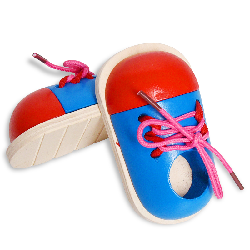 Threading Small Shoes Teach Baby Tie Laces Young Children Early Teaching Puzzle Wooden Toys 2-3-6 years old
