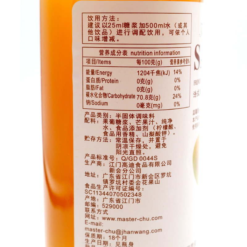 Chabrile mango syrup 900ml fruit taste fruit dew cocktail Condensed Juice Milk Tea Shop Zhu Master nectar