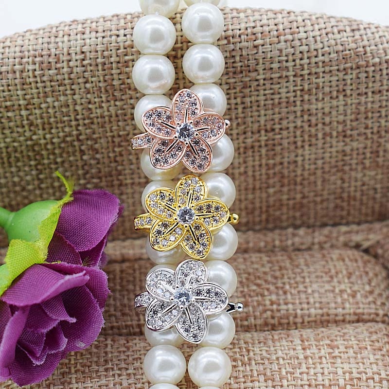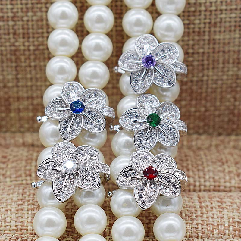 925 Silver Clock Accessories Pearl Branch Clamp Double Necklace Fixed Mezzle Closed Flower Clothes