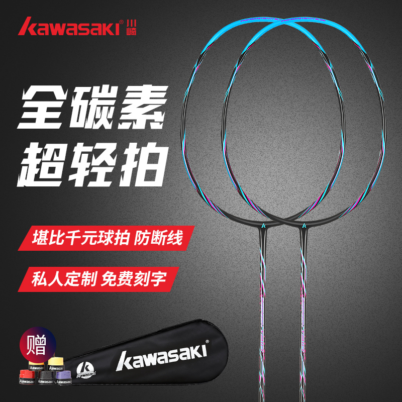 Kawasaki badminton beginner Girls Professional full carbon ultra-light single shot purple 4U double shot carbon fiber durable Red